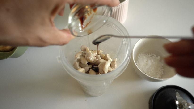 - Scola gli anacardi e trasferiscili nel frullatore con latte di soia, vaniglia e zucchero a velo. Frulla fino a ottenere una crema liscia e setosa.