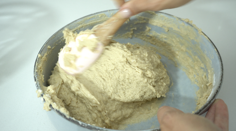 - In una ciotola capiente unisci la farina e il sale. Versa al centro i liquidi con il lievito e mescola con una spatola fino a ottenere un impasto grossolano. Copri con un panno o pellicola e lascia lievitare fino al raddoppio del volume (circa 1 ora, ma puĂ² variare in base alla temperatura ambiente).